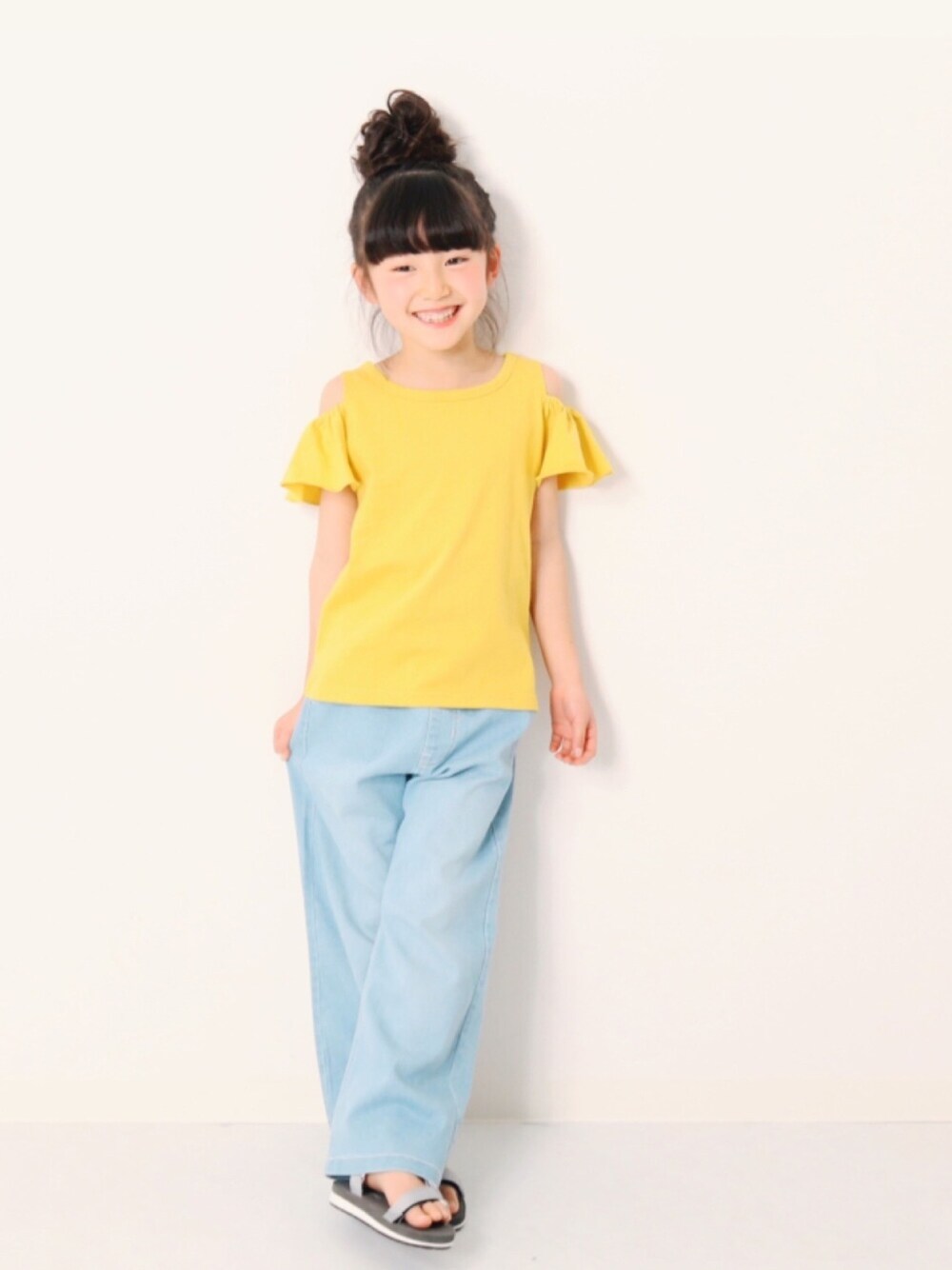こんばんは🙌🏻 ひと足お先に夏コーデを🍉 新作☝︎オフショルダーTee☻ 少し先ですが、、、、! スポサン、今年も新色でます♡ そして、フォルダ公開しました✌︎ 今月もよろしくお願いします♡ モデル身長:118cm 着用サイズ:120cm