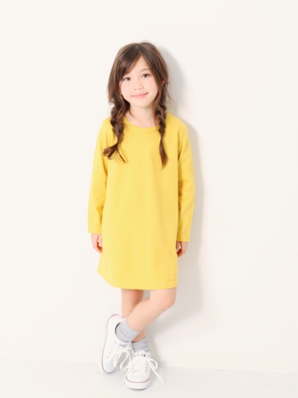 こんにちは🙌🏻 気分も明るくなるようなライムイエロー☝︎ 半袖ver.もあります☻✌︎ モデル身長:112cm 着用サイズ:110cm