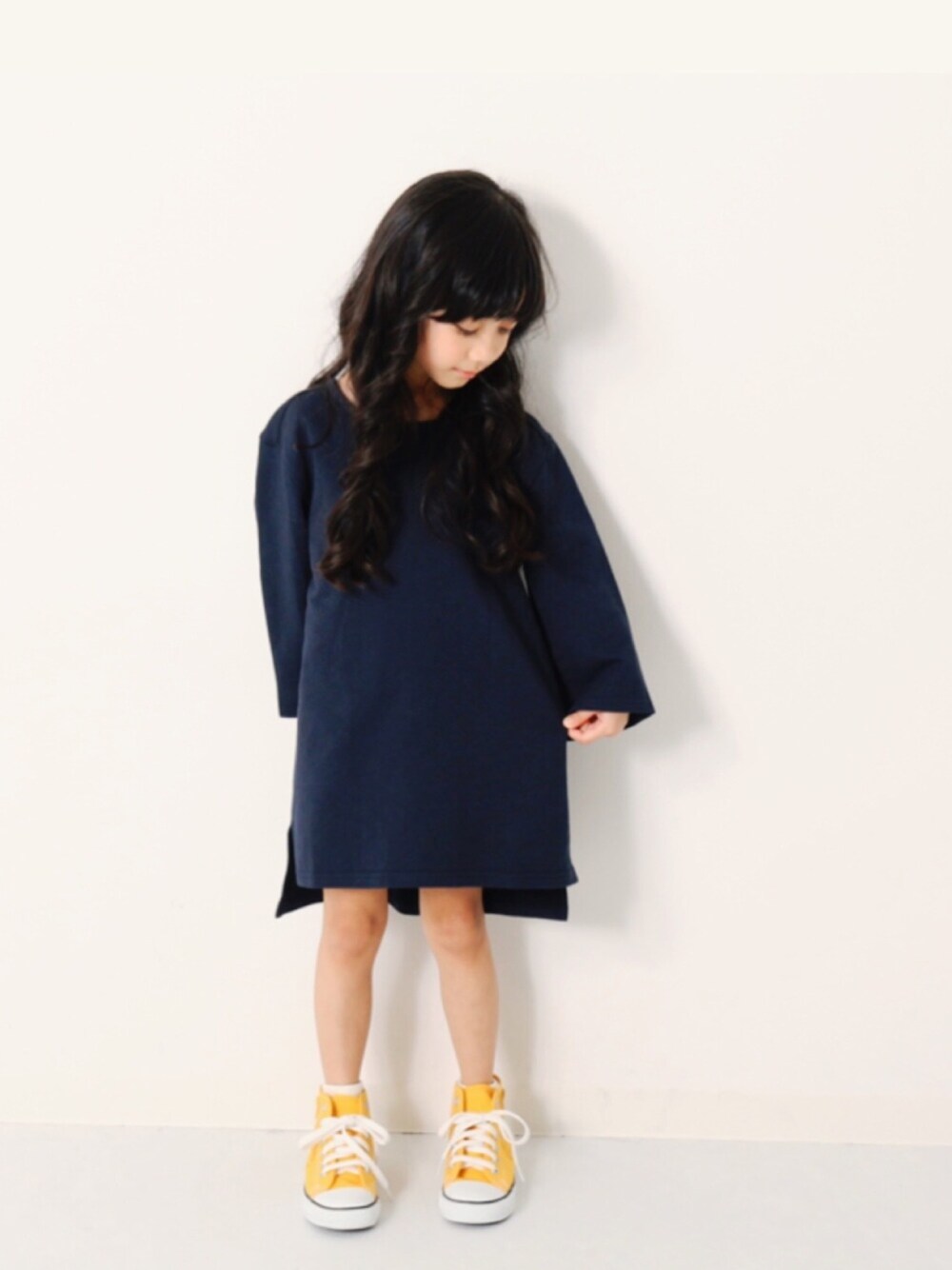 こんにちは🙌🏻 チュニック丈7分袖Tee オーバーサイズでワンピースに☻ いまなら50%OFFです! ミニ裏毛なのでしっかり素材です✌︎ モデル身長:108cm 着用サイズ:120cm