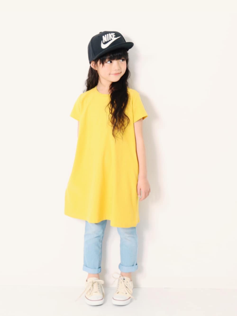 こんばんは🙌🏻 夏にふさわしい爽やかカラー☻ ブリーチデニムとの相性も💮 シンプルだけどだいすきコーデ♡ モデル身長:118cm 着用サイズ:120cm