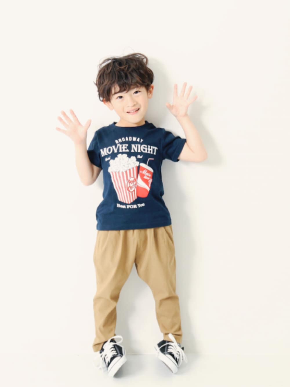 こんにちは🙌🏻 着回し力抜群のタックパンツ✌︎ Tシャツは近日発売です☻ モデル身長:110cm 着用サイズ:110cm