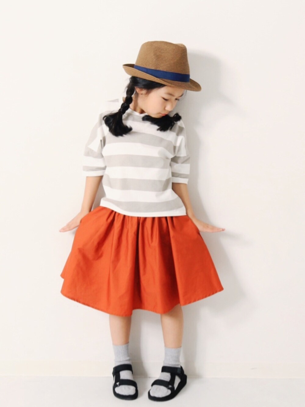 こんばんは🙌🏻 麦わら帽子で一気に夏らしく☻ 相変わらず大人気のボーダーTee いつもありがとうございます! モデル身長:115cm 着用サイズ:110cm