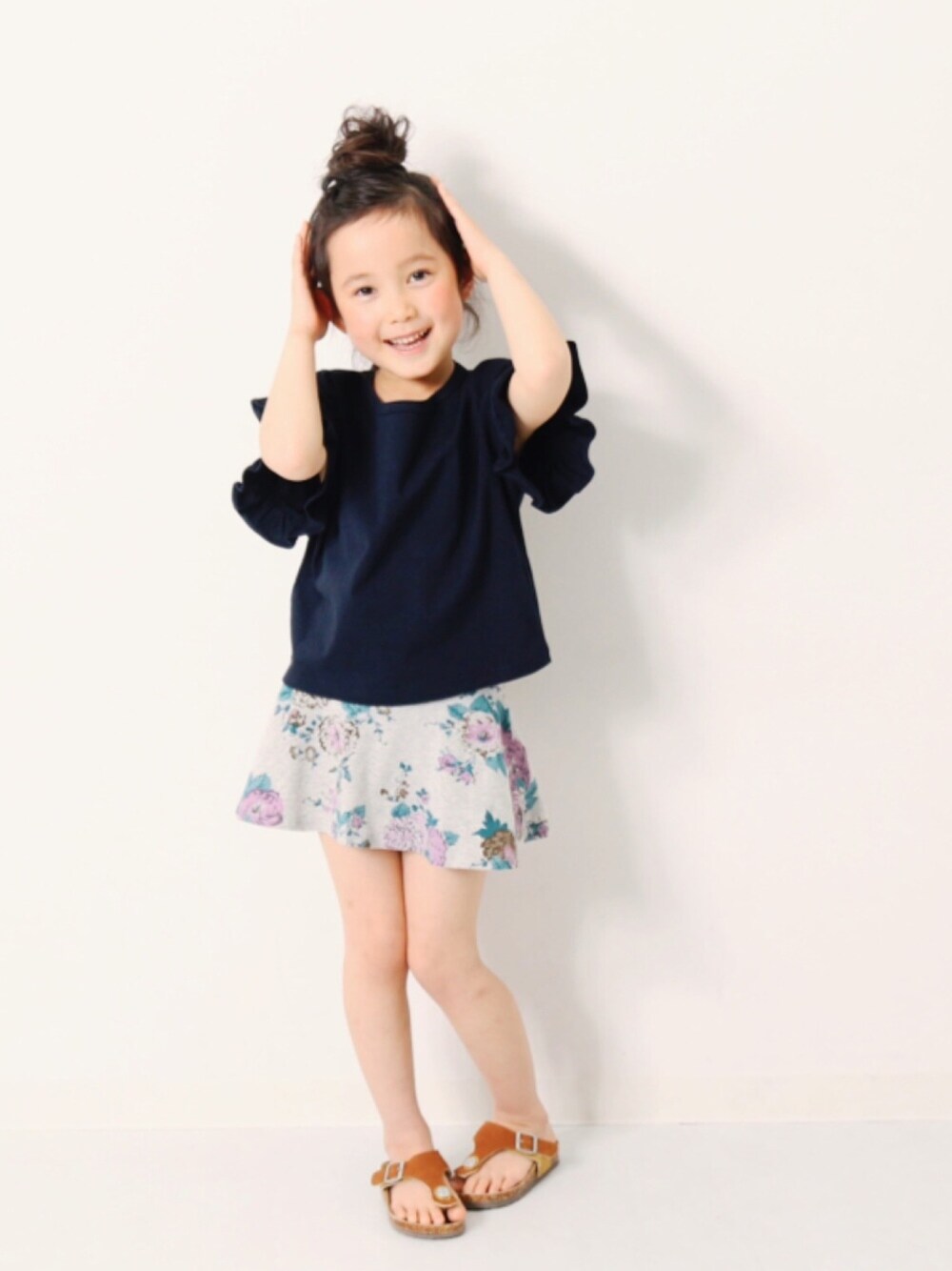 こんばんは🙌🏻 フリル袖Teeの新色ネイビー✌︎ ZOZOTOWNにもやっと新色が揃いました☻ モデル身長:112cm 着用サイズ:110cm