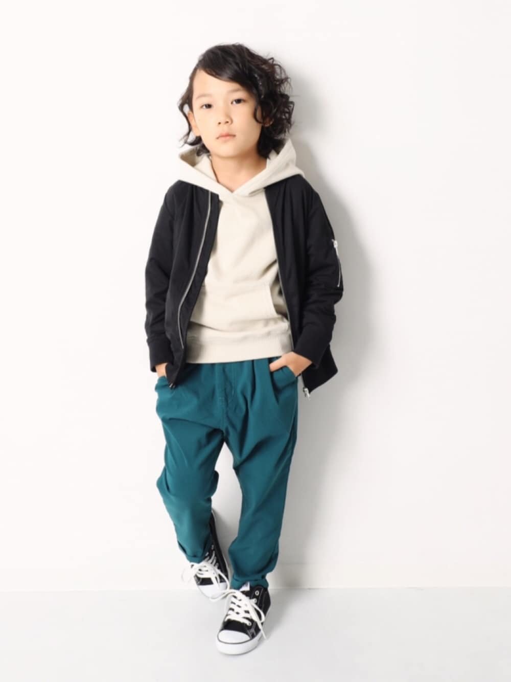 こんばんは🙌🏻 先日投稿した新色フォレスト🍃 タックパンツにもあります☻ 深みのある色味なので ベージュなど淡い色味との相性◎ モデル身長:118cm 着用サイズ:120cm