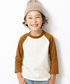 こんばんは🙌🏻 ラグラン袖Tシャツの新色✌︎ 見頃がオフホワイトなので、 温かみのあるやさしい印象になります♡ めちゃめちゃおすすめ🤤 モデル身長:123cm 着用サイズ:120cm