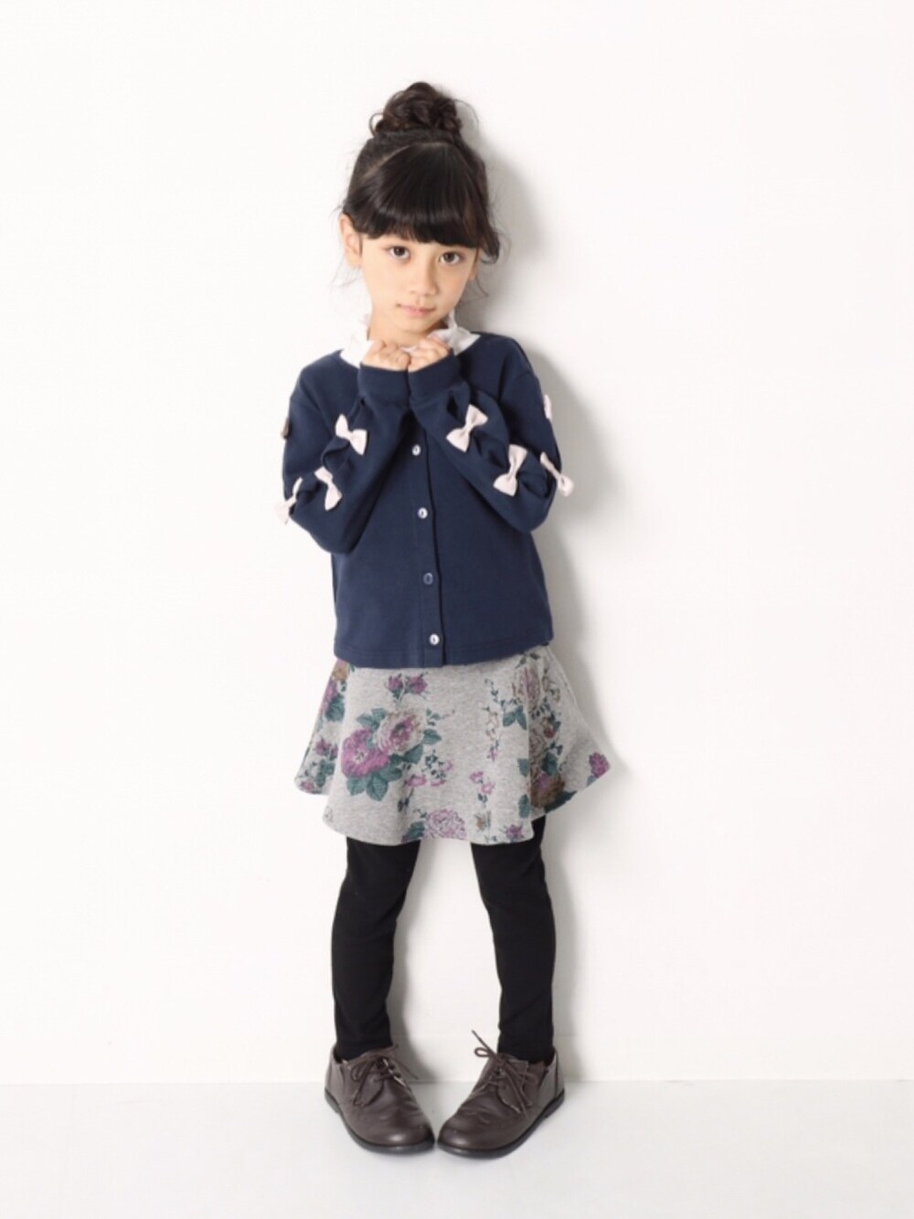 おはようございます🙌🏻 たまにはガーリースタイルも☺️♡ 普段着にも使える フリルシャツとリボンカーディガン ちょっとしたお出かけの時にも おすすめです◎ モデル身長:113cm 着用サイズ:110cm
