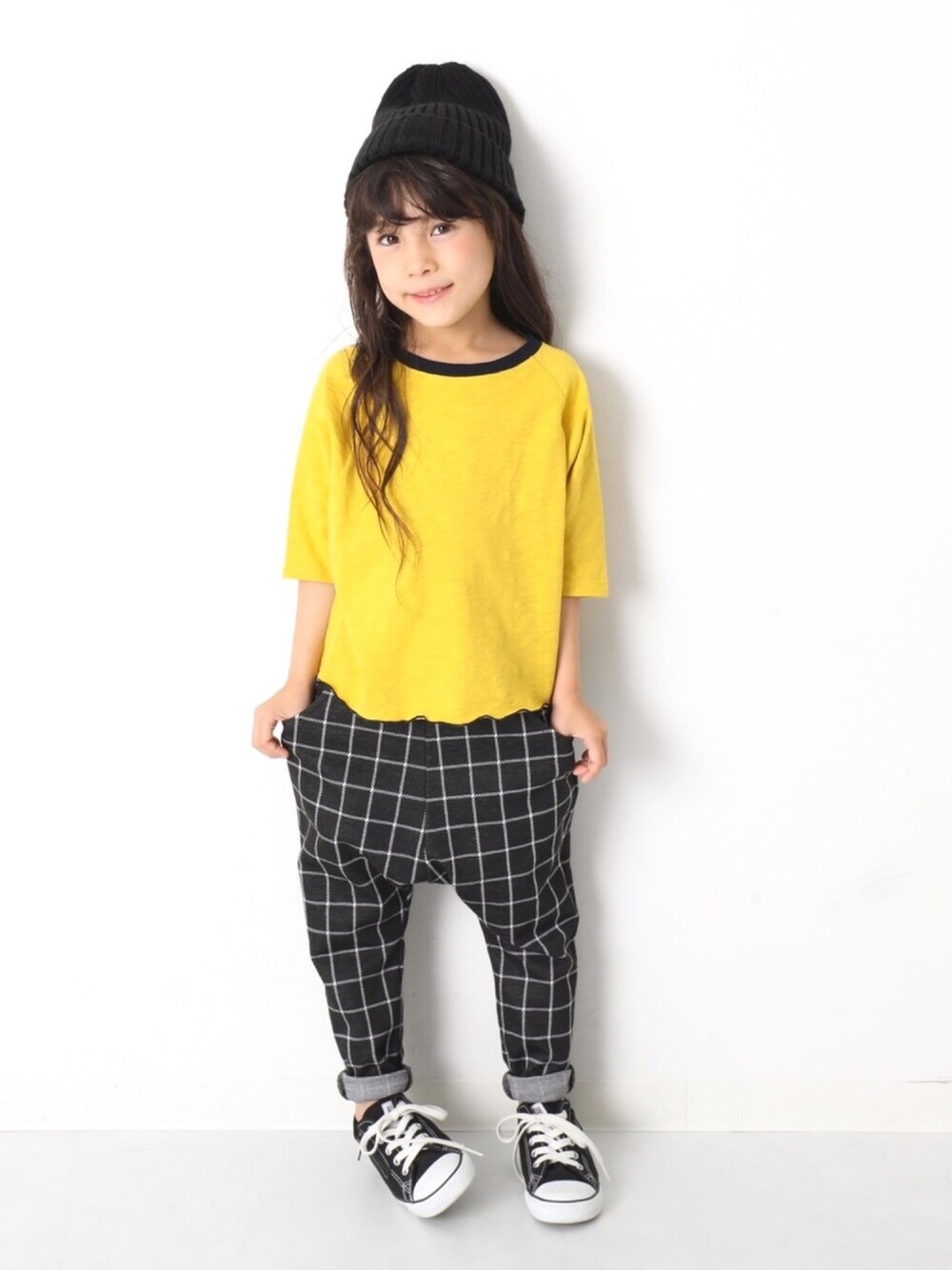 こんばんは🙌🏻 蜂さん?のようなイエローコーデ🐝 ゆる感がたまらなくかわいい🤤👏🏻 サルエルパンツはやわらかな肌触りなので 着心地◎です☺️ モデル身長:109cm 着用サイズ:110cm