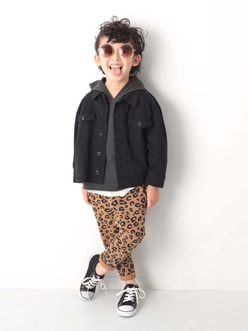 こんばんは🙌🏻 つっぱりに憧れた幼稚園児😂🧡 トレンドのレオパード柄 ほかに合わせるカラーを落ち着かせると 大人な印象に◎ 思い切って取り入れてみるのもおすすめです♡ モデル身長:116cm 着用サイズ:110cm