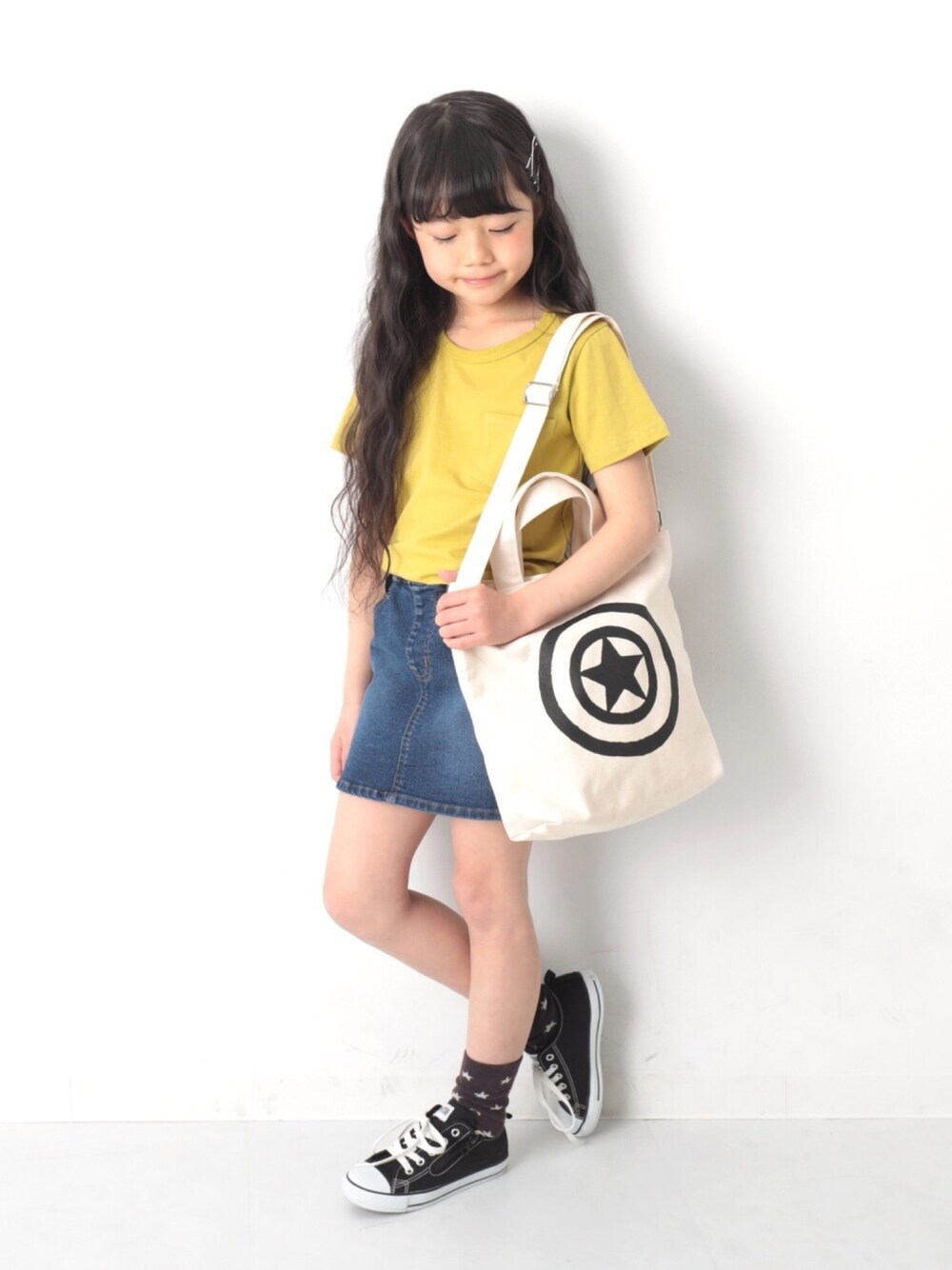 こんばんは🙌🏻 MARVEL好きにはたまらない キャプテンアメリカのアイコントート☺️ モノトーンカラーなので シンプルに使いこなせます✌︎ モデル身長:123cm 着用サイズ:120cm