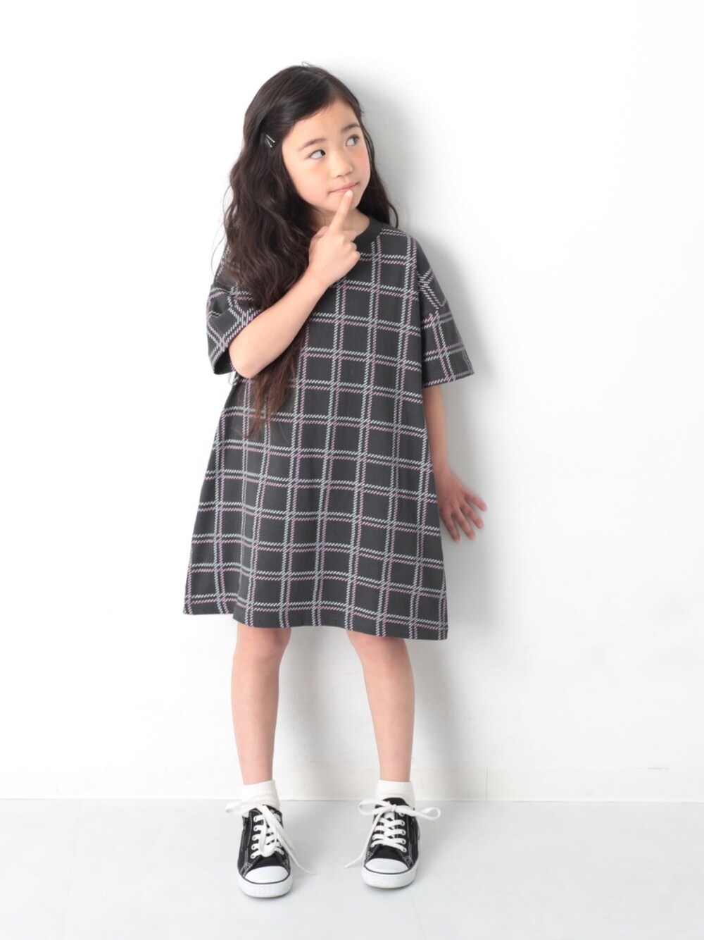 こんにちは🙌🏻 新作総柄ビッグワンピ♡ 色味が絶妙なチェック柄☻ 1枚で女の子らしさがでます🥰 モデル身長:116cm 着用サイズ:120cm