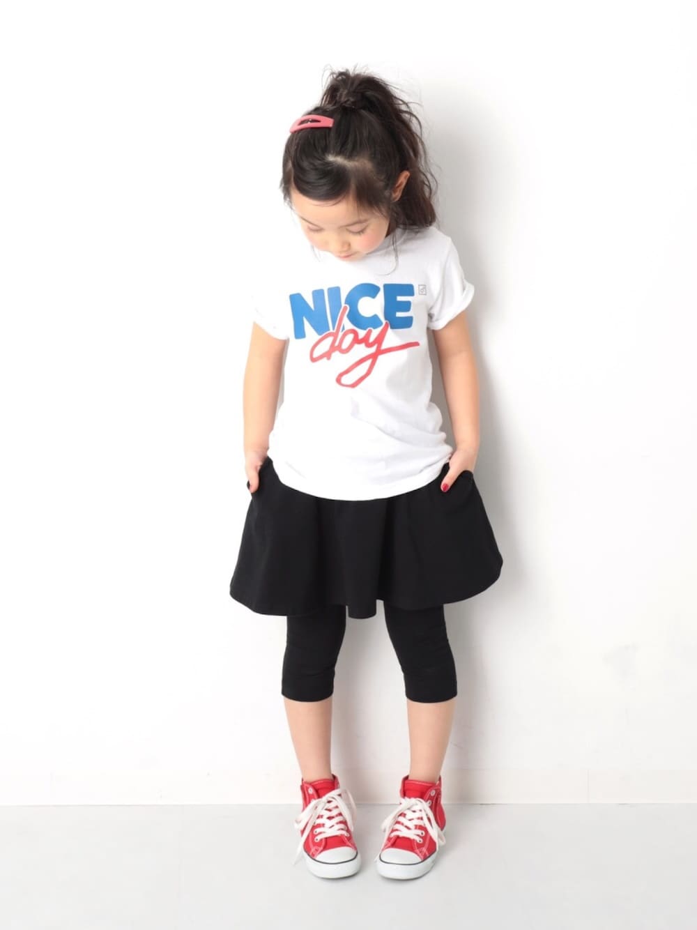 こんばんは🙌🏻 namiiiiさんコラボTee★ NICE dayのロゴカラーがどれもおすすめ◎ 白Teeは赤と青のメリハリカラー🥳 ボトムスは黒で落ち着きのある印象に✌︎ モデル身長:118.5cm 着用サイズ:120cm