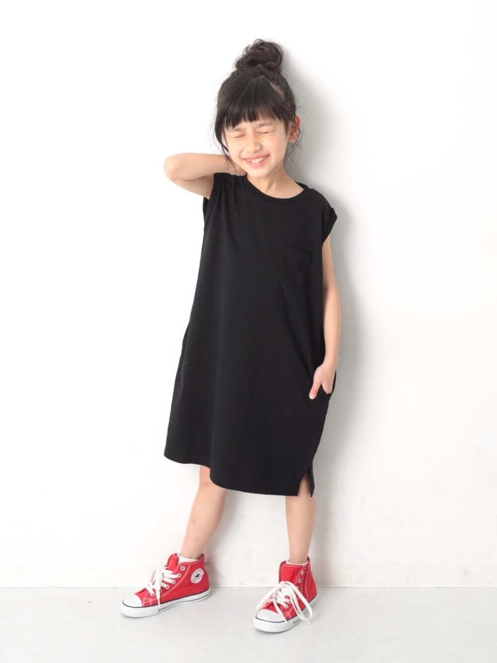 こんばんは🙌🏻 カジュアルに落とし込める ボックスタンクワンピ☺️ 蒸し暑くなるこれからの季節にもおすすめ◎ モデル身長:115cm 着用サイズ:110cm