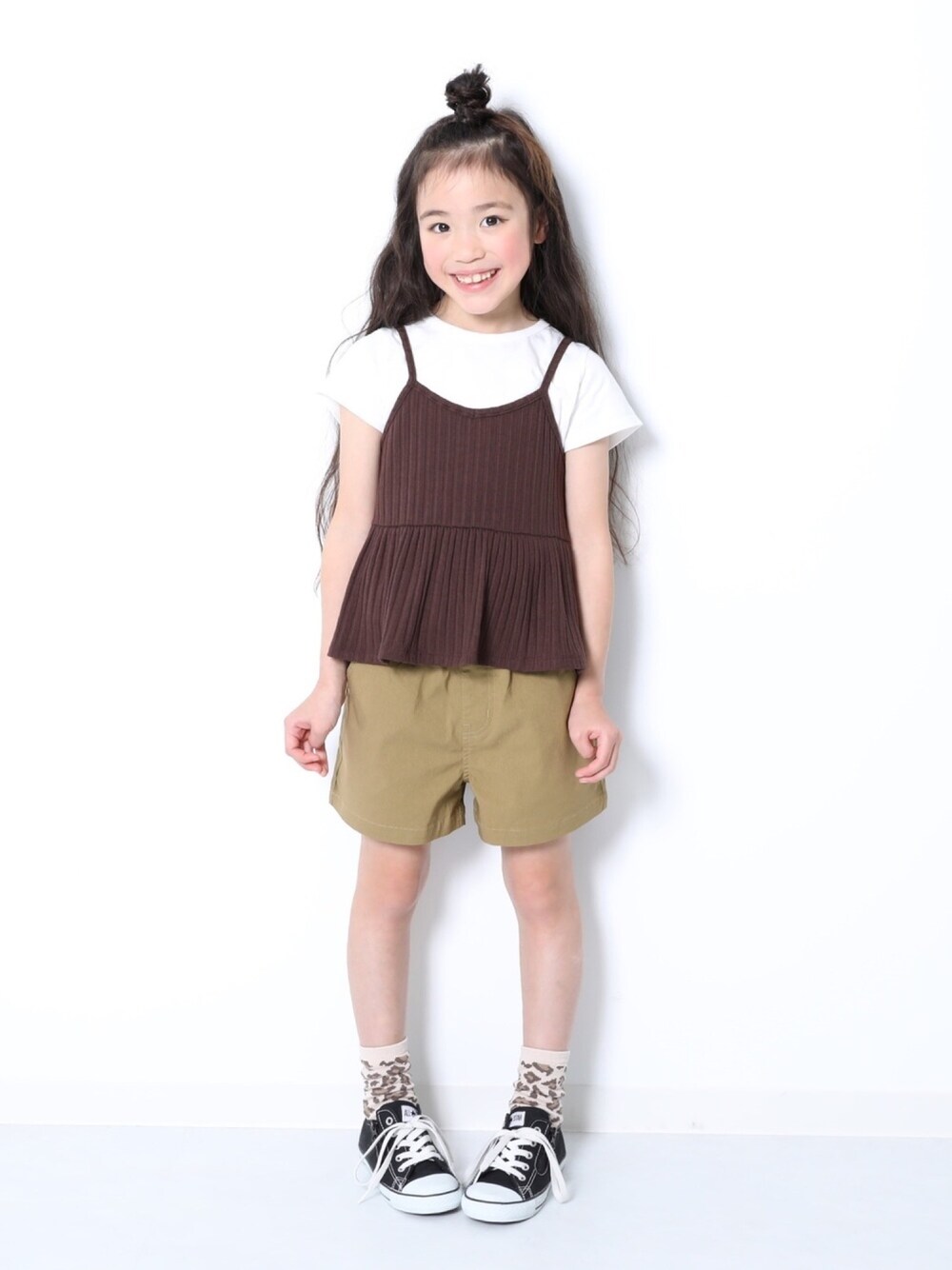 こんばんは🙌🏻 Tシャツとキャミソールは取り外し可能なので、 インナーを入れ替えても◎ 着まわし力ばっちりのアイテムです✌︎ モデル身長:123cm 着用サイズ:120cm