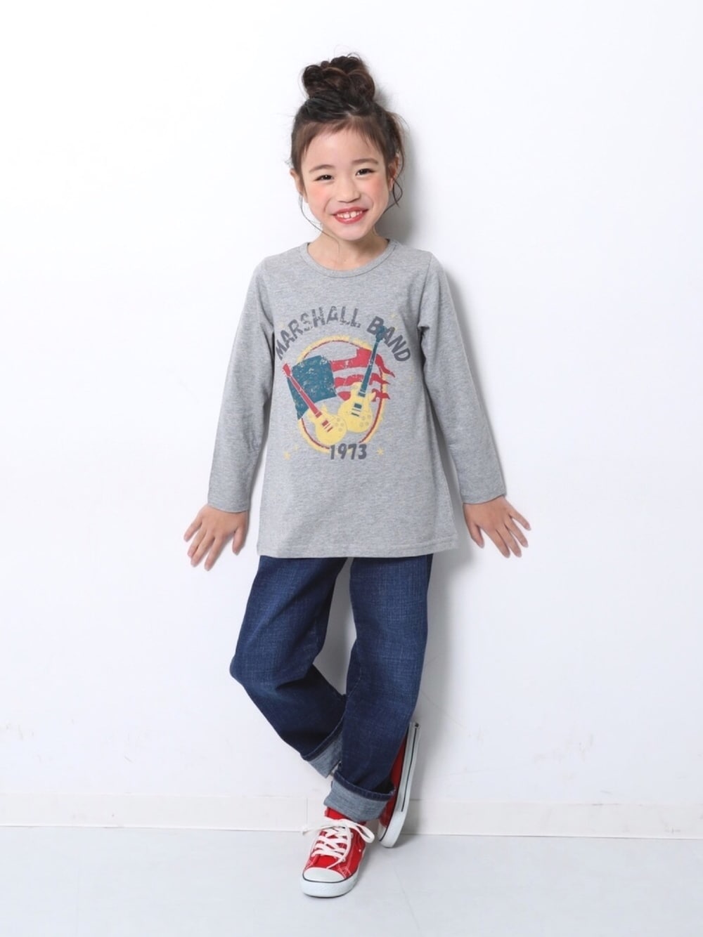 こんばんは🙌🏻 さりげないAラインのチュニック😌 ロンTより若干長めの着丈で ワイドめのパンツと合わせて ゆるっと着るのもおすすめです☺️♡ モデル身長:123cm 着用サイズ:120cm