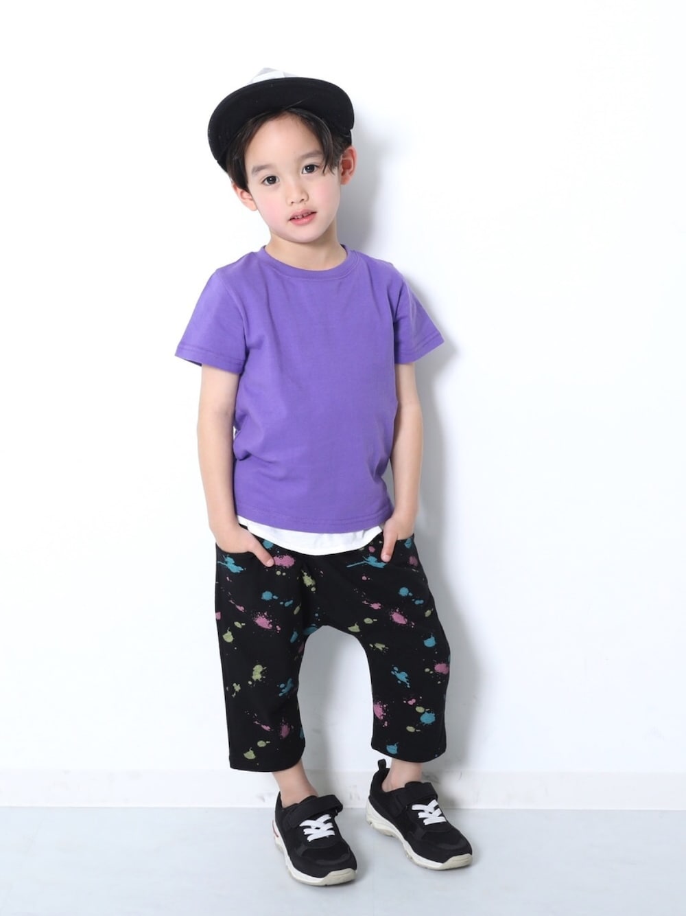 こんばんは🙌🏻 おうちスタイルにもおすすめサルエルパンツ😌 お好きなデザインをみつけてください✌︎ モデル身長:106cm 着用サイズ:110cm