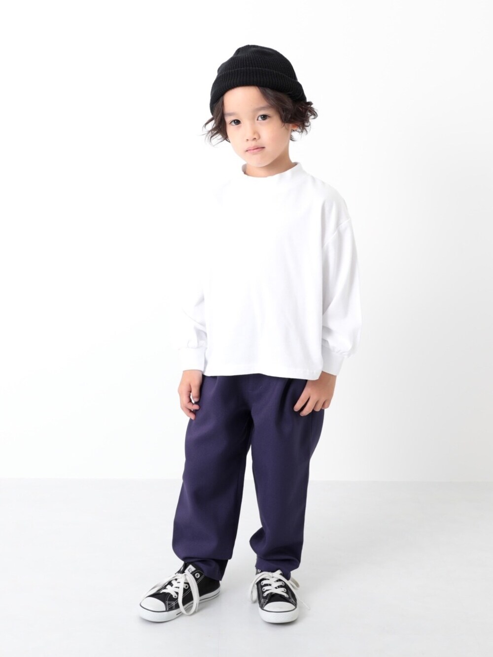 こんばんは🙌🏻 ドシンプルが良い😌 とことんシンプルにすることで パープルのスラックスパンツが映えて 洗練されたスタイルに☺️ モデル身長:110cm 着用サイズ:110cm