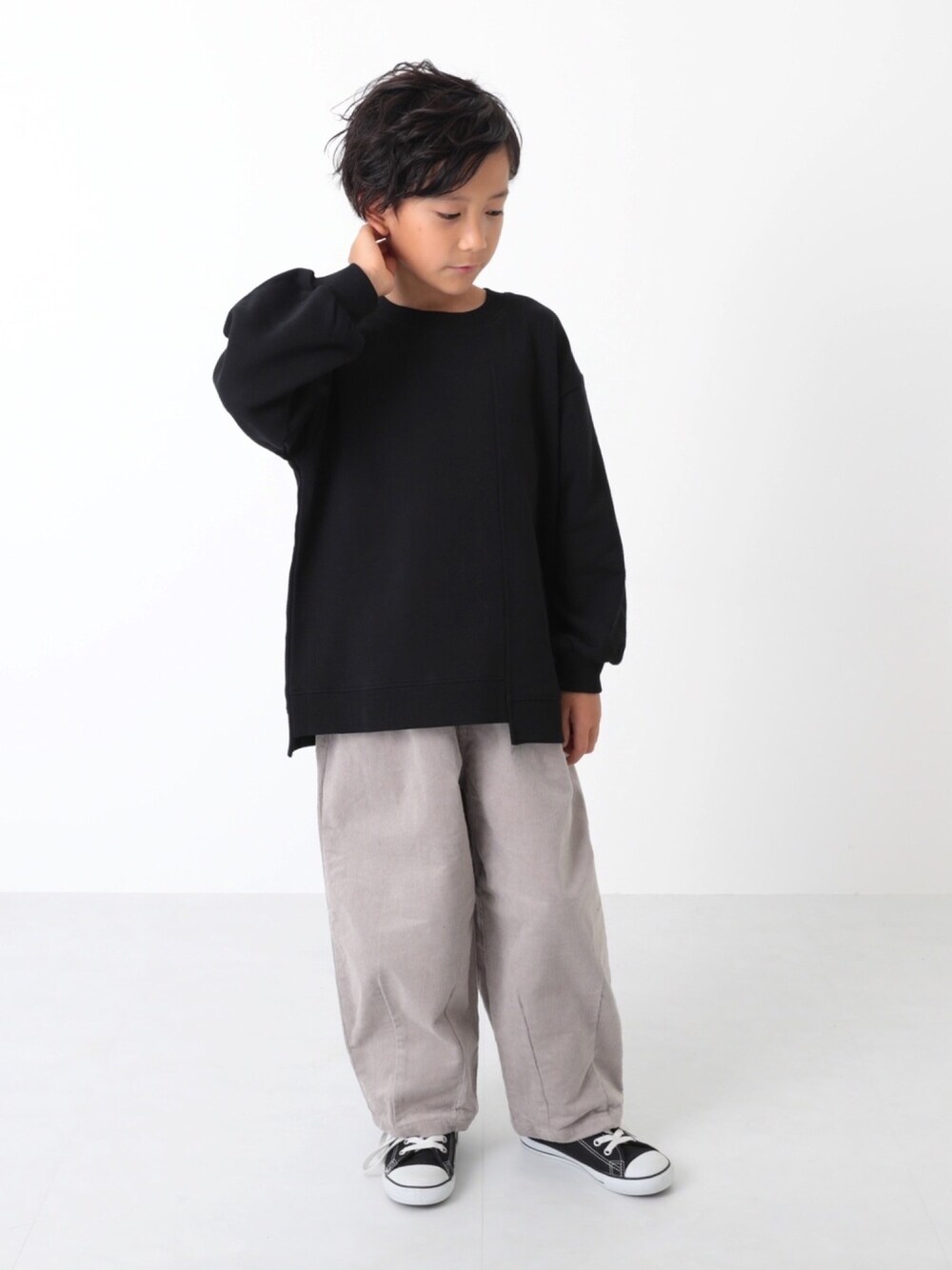 こんばんは🙌🏻 大人気のヒザデルパンツに コーデュロイタイプが新登場🥳 しっかりしているので、 ヒザデルパンツよりもシルエットがきれいにみえます😌 モデル身長:123.5cm 着用サイズ:120cm