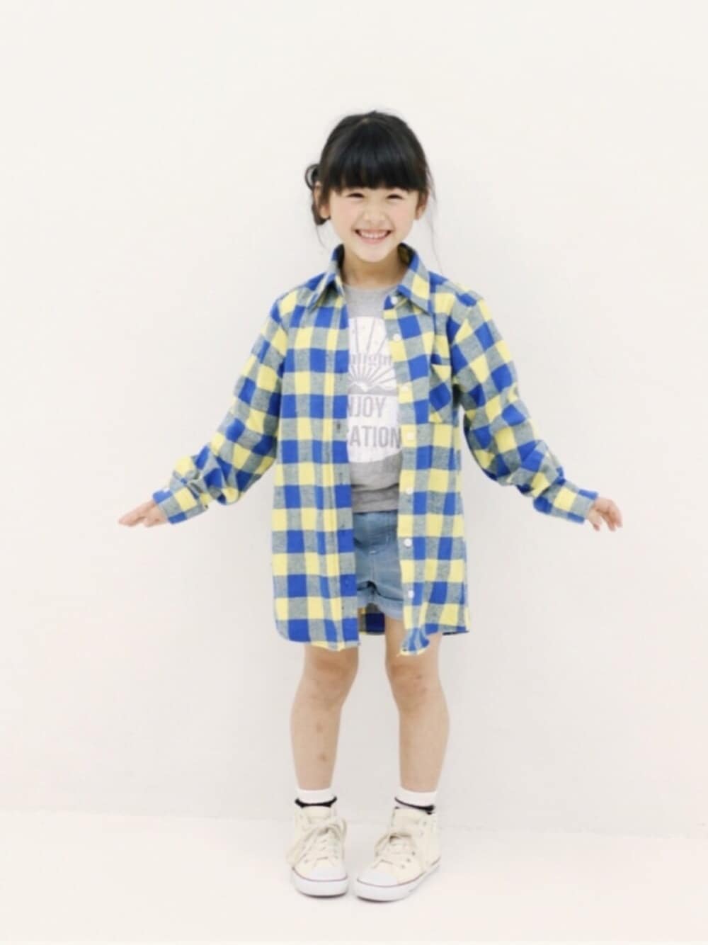 こんにちは🙌🏻 おおきめのチェックシャツワンピース🎀 チェックシャツといえば ついついレッド、グリーン系を選びがちですが 目を惹くイエロー×ブルーも コーデのポイントになって素敵ですよね☺️