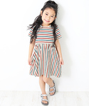 devirockのワンピース「ウエスト切替先染めボーダー半袖ワンピース」を使ったコーディネート