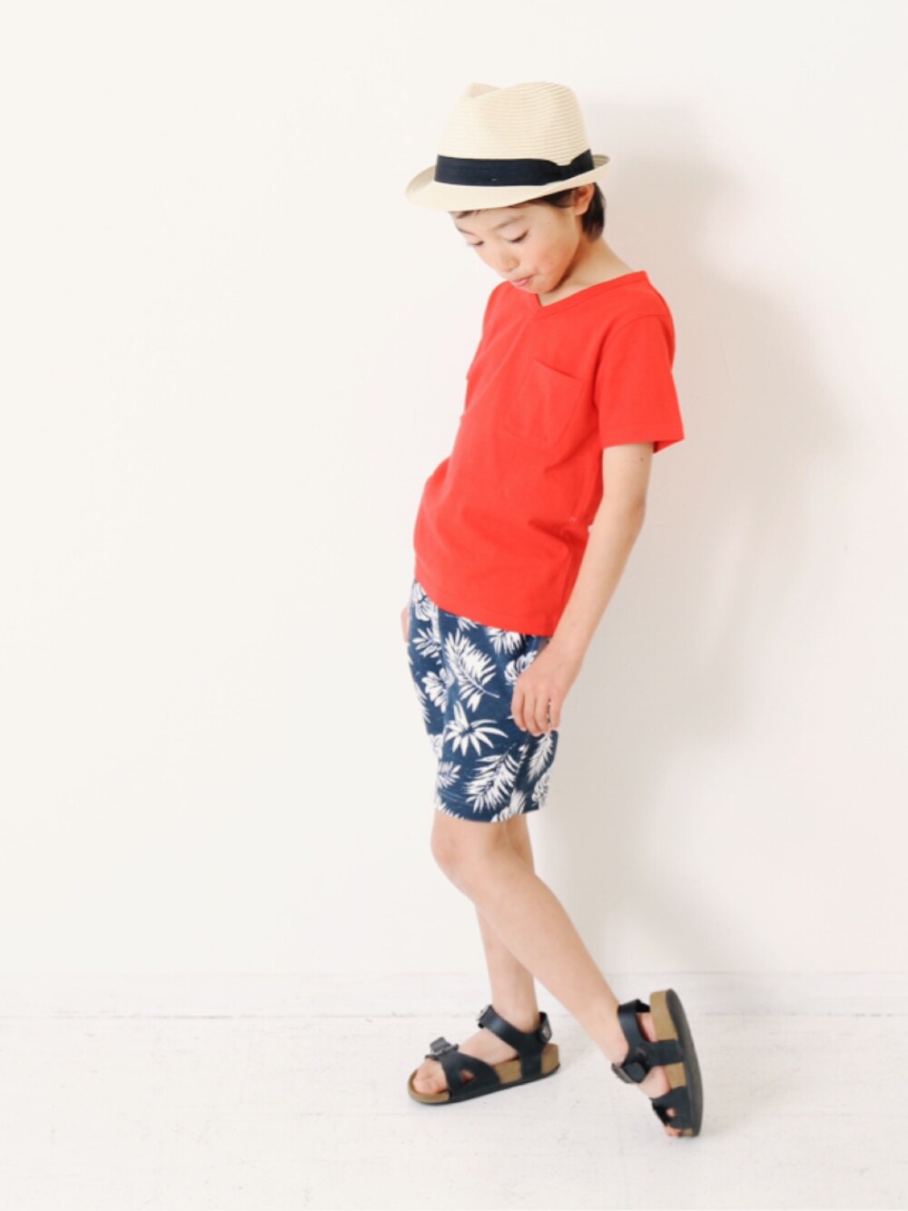 真っ赤のTシャツに映える、 ボタニカル柄のハーフパンツ🏖 海が似合いそうなコーデ☺️🙌🏻