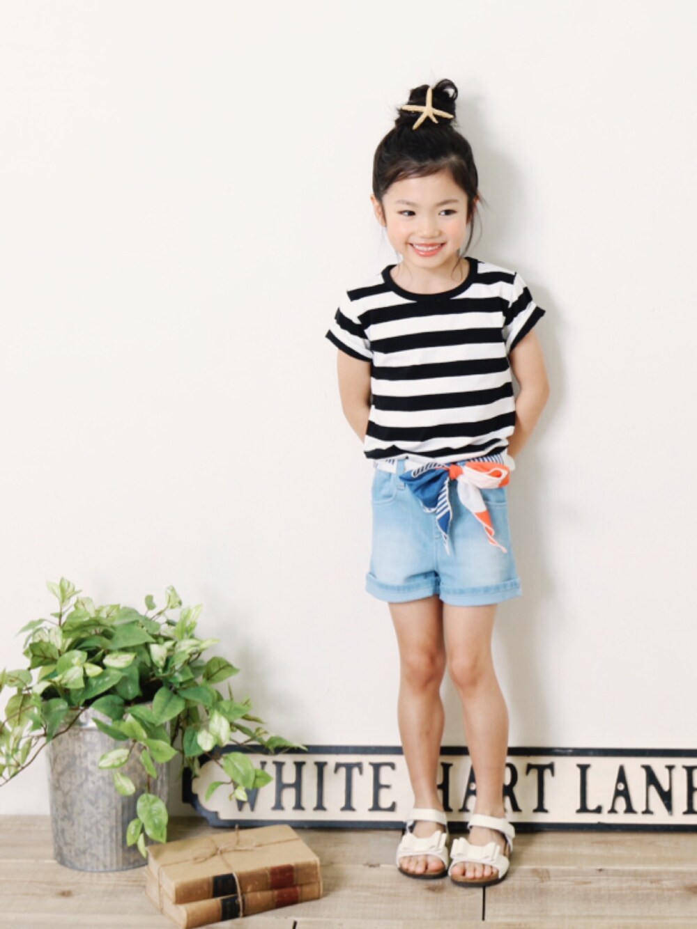 devirockのTシャツ/カットソー「先染めボーダークルーネック半袖Tシャツ カットソー」を使ったコーディネート