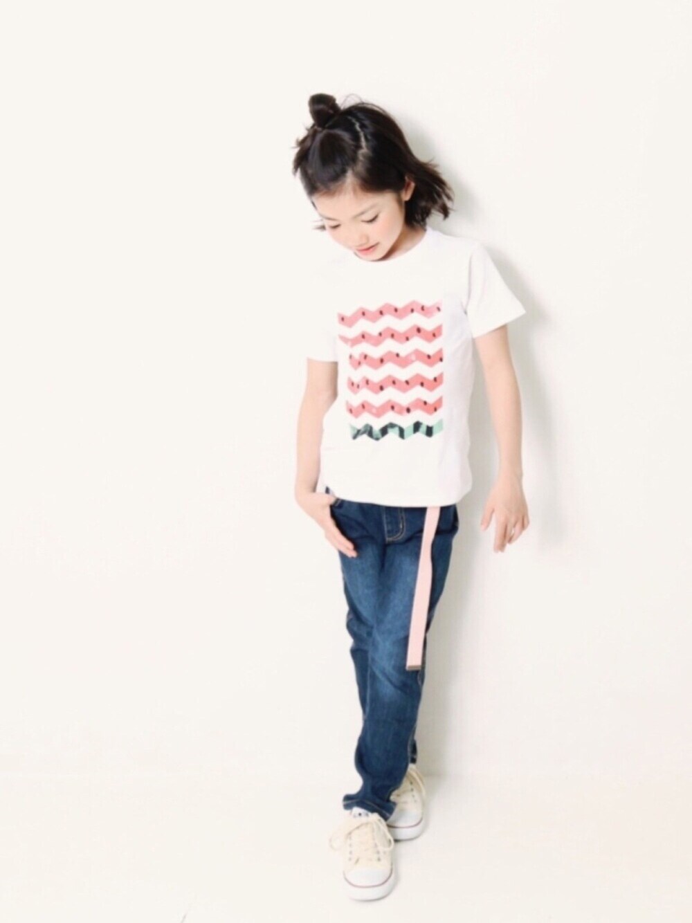 Tシャツ × デニム シンプルコーデ ✌︎★ ギザギザしましま スイカ柄🍉 このTシャツだいすきです♡