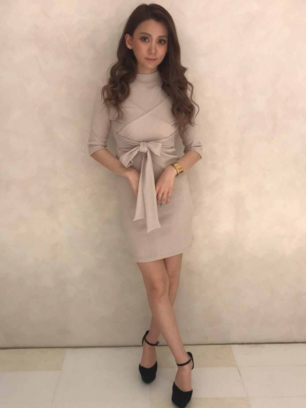 Delyle NOIR♡Rioのワンピース「オープンショルダーリブワンピース」を使ったコーディネート