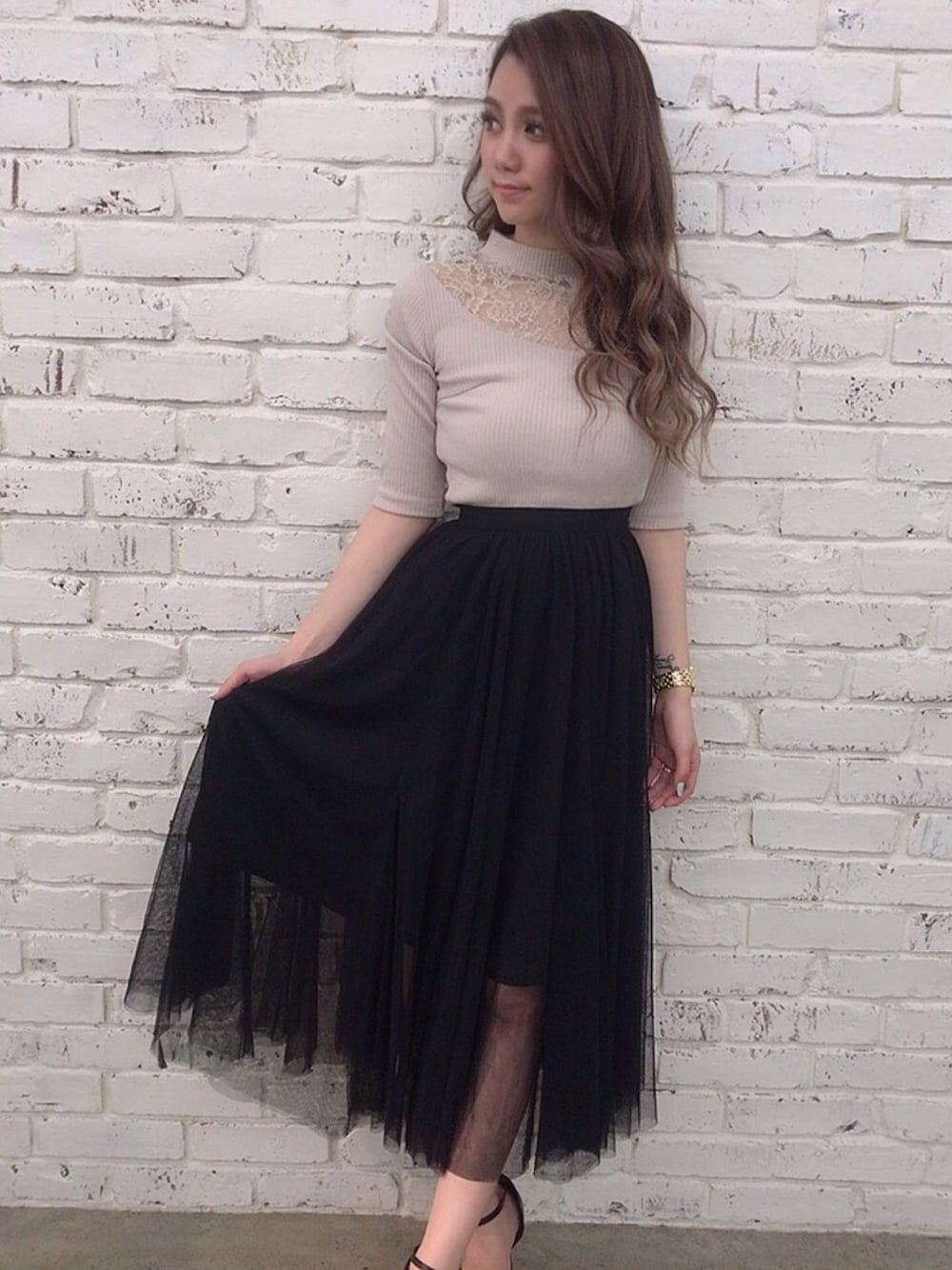 Delyle NOIR♡Rioのスカート「チュールロングスカート」を使ったコーディネート