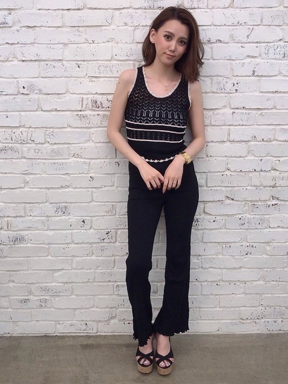 Delyle NOIR♡Rioのタンクトップ「かぎ編み風ニットタンクトップ」を使ったコーディネート
