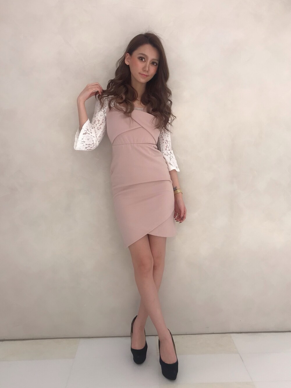 Delyle NOIR♡Rioのワンピース「ラップビスチェ風レースワンピース」を使ったコーディネート