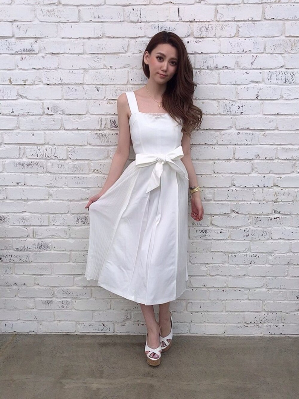 Delyle NOIR♡Rioのワンピース「サイドプリーツキャミワンピース」を使ったコーディネート