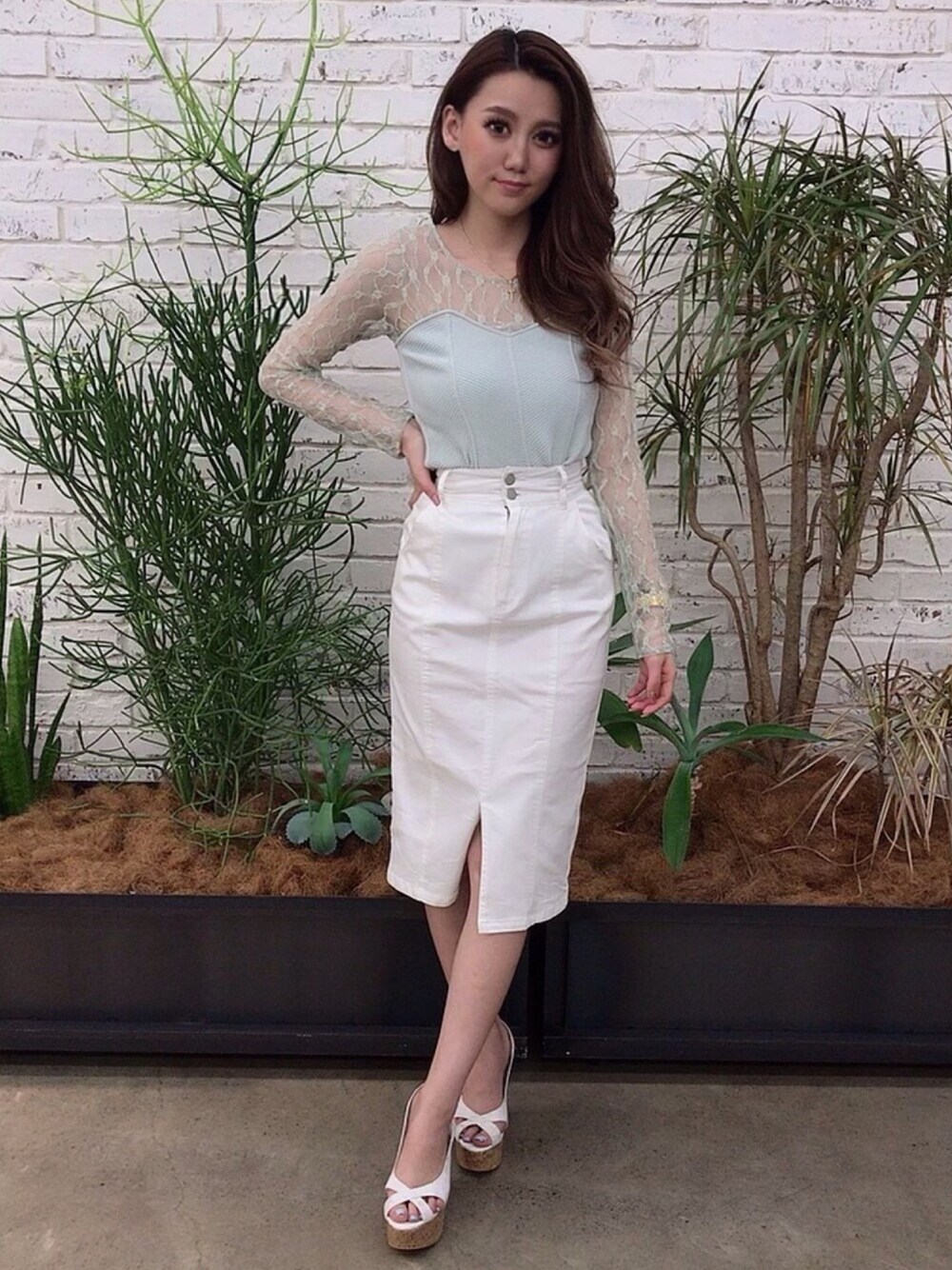 レースのトップスとビスチェを合わせたようなデザインのトップスなので1枚でオシャレに決まります😌🧡スカートインしてもすっきりと合わせてあげれます✨