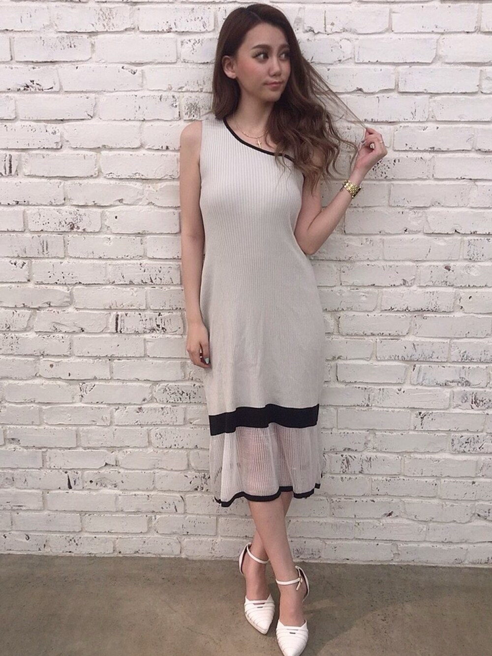 Delyle NOIR♡Rioのワンピース「ワンショルシアーフレアーワンピース」を使ったコーディネート
