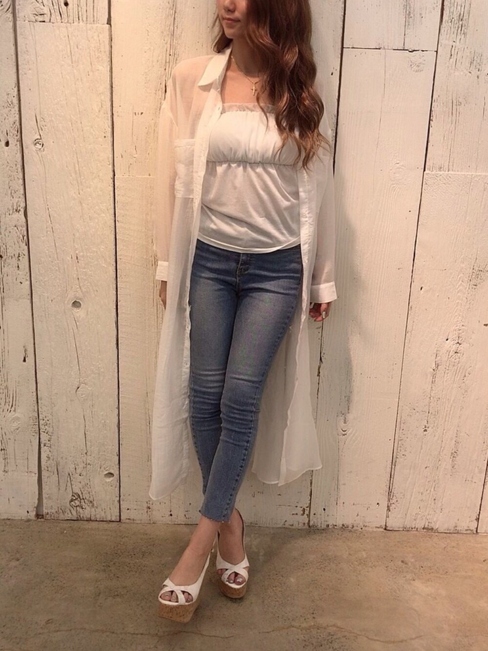 シアー素材で透け感可愛いロングシャツです♡フロントボタンを閉めてあげて透け感あるワンピースとしても使って頂けます✨ロング丈なので身長を高く見せます🥰