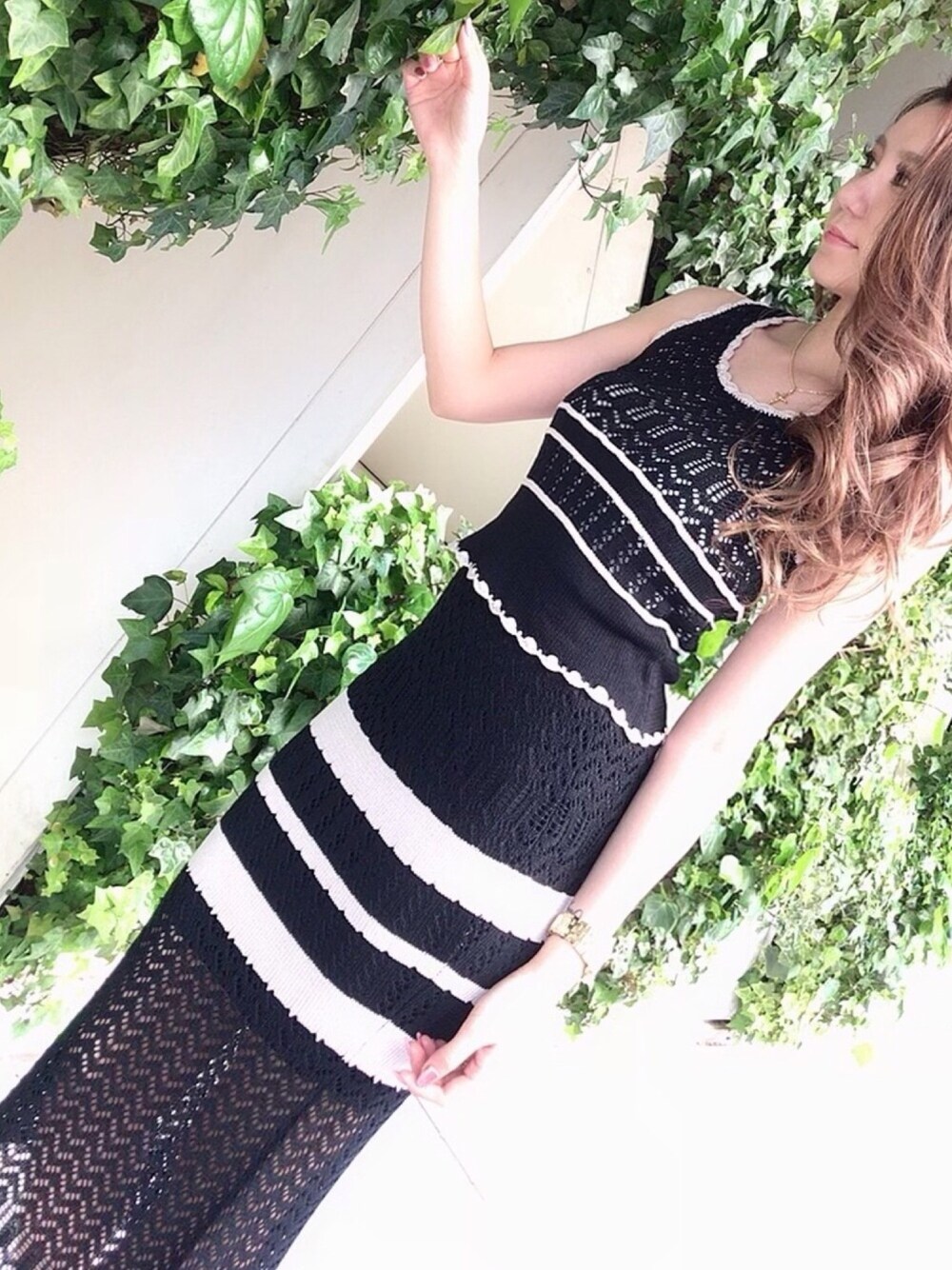 タイトシルエットとかぎ編みトップスとロングスカートです✨別売りですがセットアップコーデがオススメです🥰トップスはバックスタイルに大きなリボン付きで可愛いのでオススメです😌こちらの商品は6月上旬発送予定です。