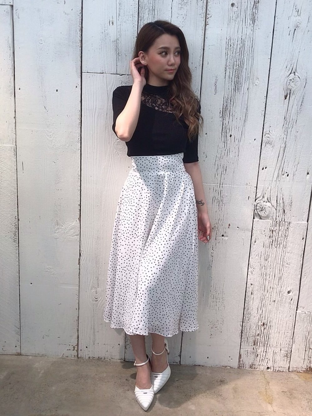 Delyle NOIR♡RioのTシャツ/カットソー「アシメシアーレースプチハイネックリブトップス」を使ったコーディネート