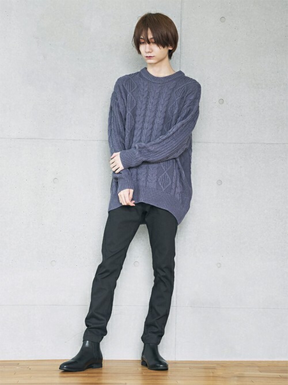 D Factoryのニット/セーター「オーバーサイズ アラン編み ビッグシルエット クルーネック ケーブルニットセーター」を使ったコーディネート