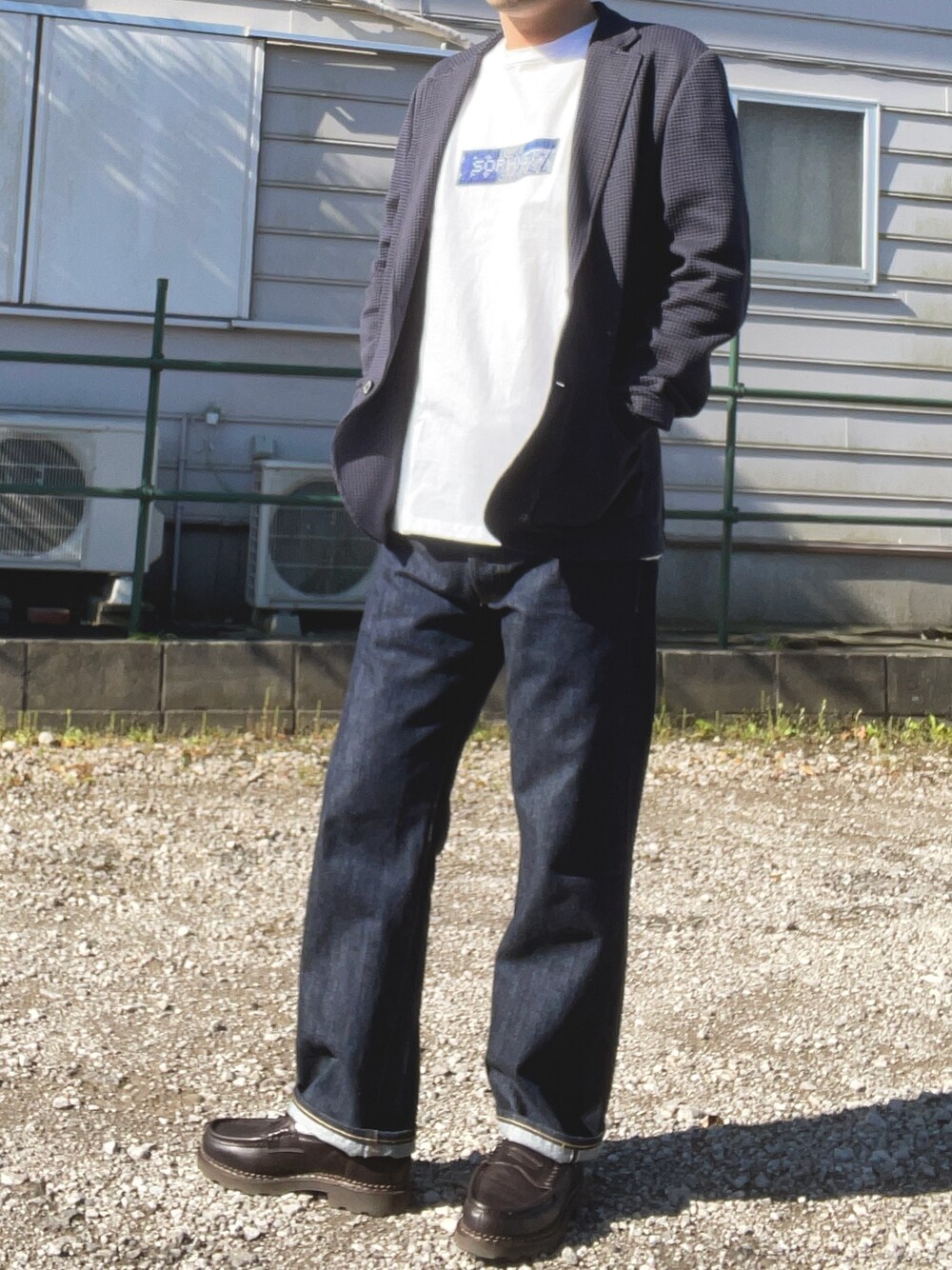 柄のついたtシャツ 緩めのデニムでカッチリし過ぎずちょっと綺麗目にしてみました
