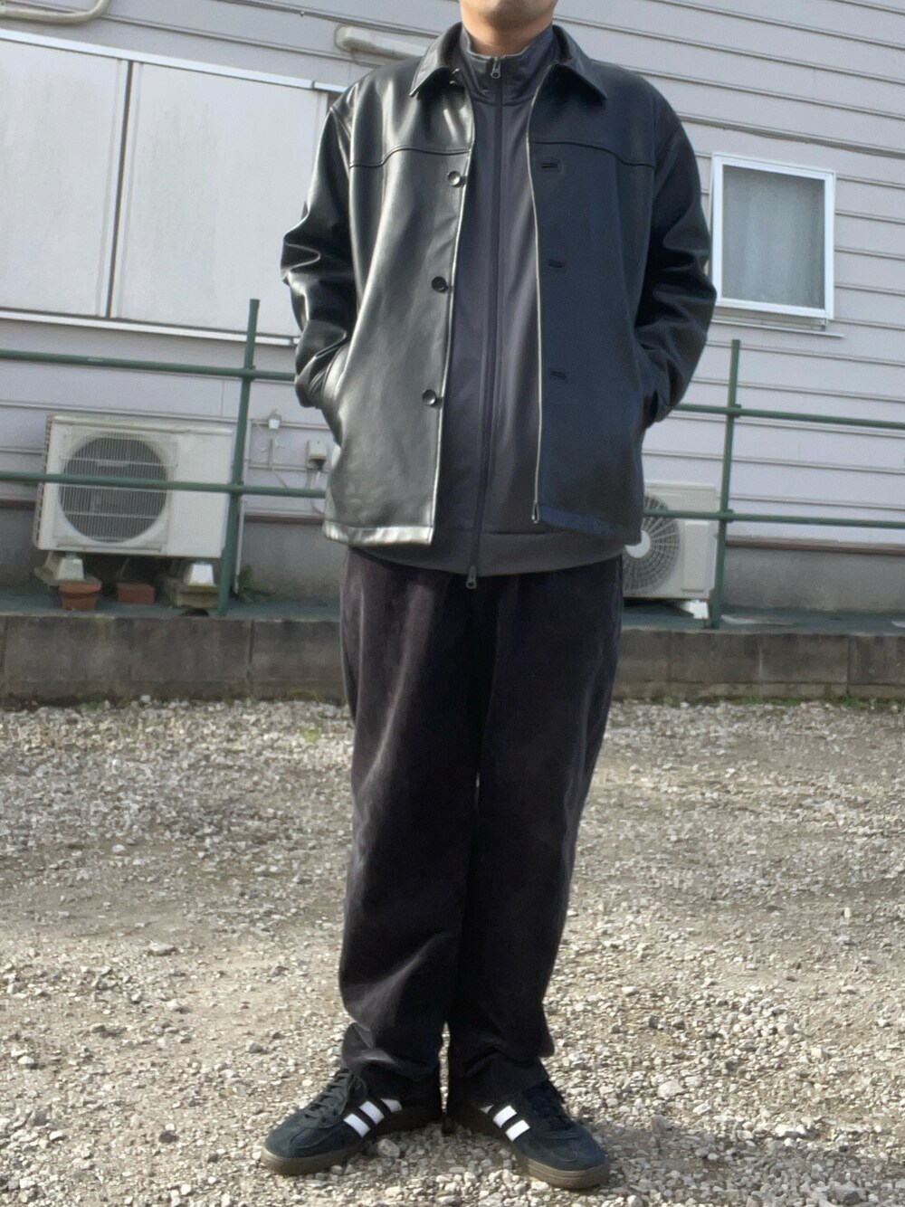 アディダスのトラックジャケットとレザージャケットの組み合わせがお気に入り アディダスの服着るなら靴もアディダスで!!←これ大事