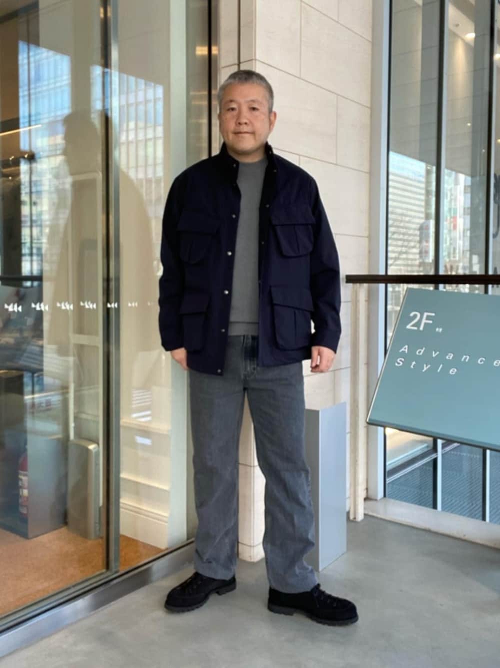 【サイズ感】 ●アウター:サイズ、シルエット共にやや大きめです。 ●ニット:サイズ、シルエット共にややゆとりがあります。 ●パンツ:サイズ、シルエット共にやや細身です。 ●シューズ:サイズ9でややゆとりがあります。 【コーディネートのポイント】 ネイビー×モノトーンでスタイリングしてみました。