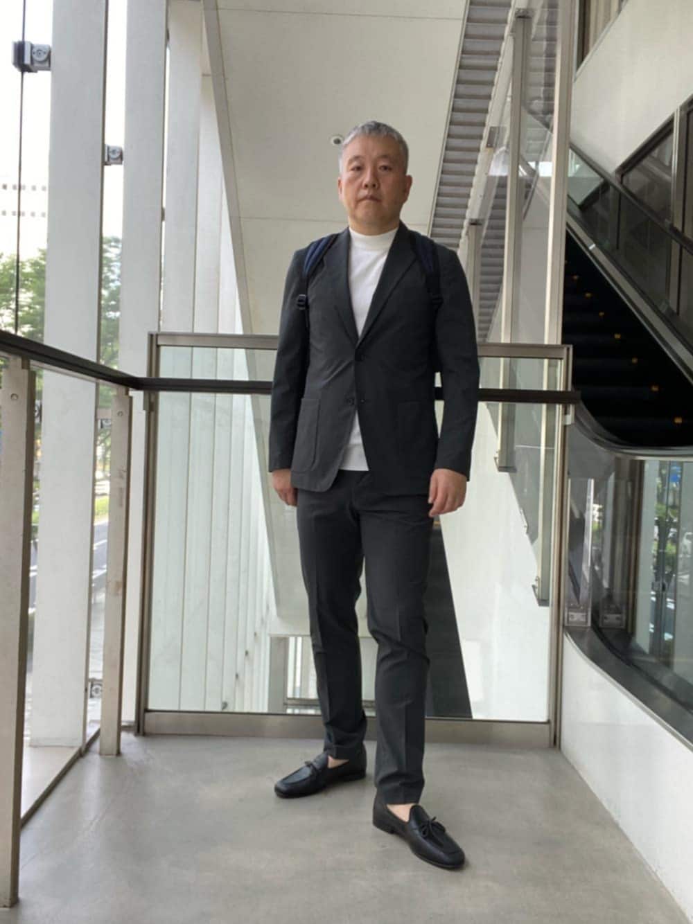 【サイズ感】 ●ジャケット:サイズ、シルエット共にやや細身です。 ●半袖ニット:サイズ、シルエット共にやや細身です。 ●パンツ:サイズ、シルエット共にやや細身です。 ●シューズ:サイズで43でジャストです。 【コーディネートのポイント】 セットアップでビジネススタイリングをしてみました。