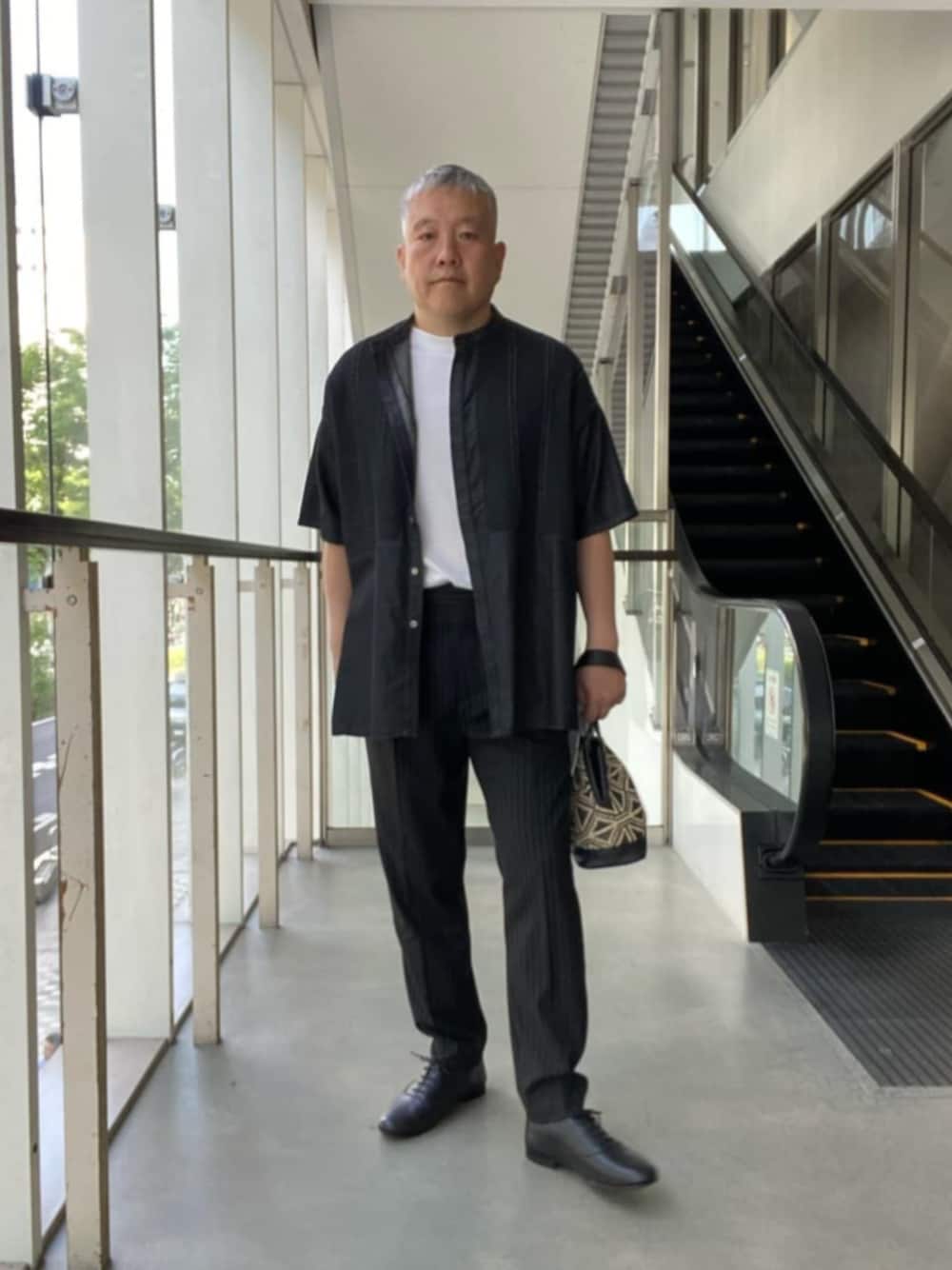 【サイズ感】 ●シャツ:サイズ、シルエット共に大きめです。 ●カットソー:サイズ、シルエット共に大きめです。 ●パンツ:サイズ、シルエット共にゆとりがあります。 ●シューズ:サイズ42でジャストです。 【コーディネートのポイント】 モノトーンでスタイリングしてみました。