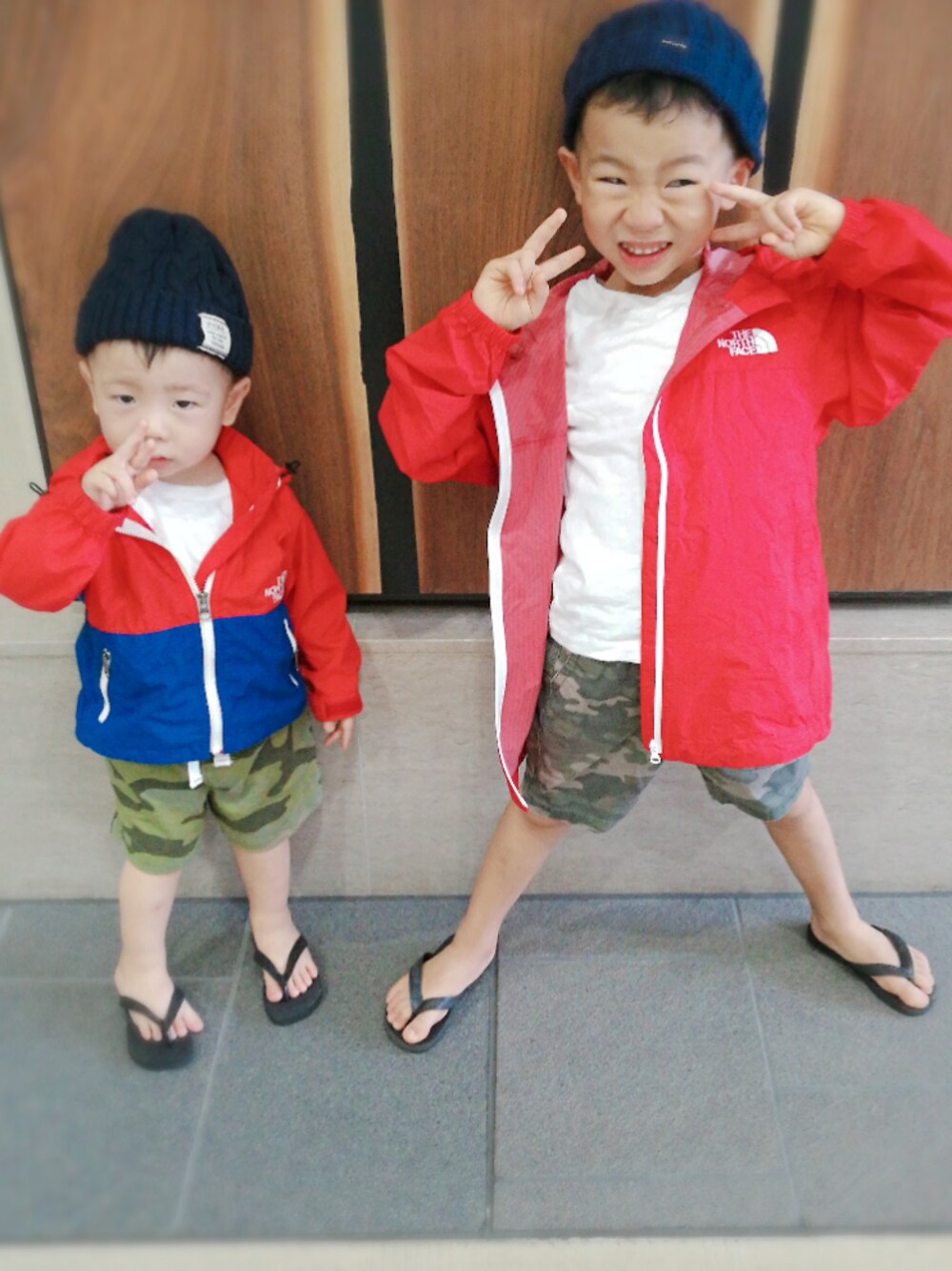 キャモフラ🦆😆 変顔と真顔😂 👶ビーサンまだ早かったか🙇💦