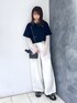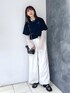 カジュアルモノトーンコーデ🖤🏳️ Tシャツはさりげない英字のカラーロゴがおしゃれ度をUPしてくれます!前後どちらにもロゴがあり、バックのデザインも可愛いのでぜひスワイプしてみてください🙌ウエストあたりまでのショート丈で、手を挙げるとお腹がチラ見えするくらいの丁度いい丈感です🫶黒だと重たくなる…という方は中にシアータートルをレイヤードすることで軽さが出る上にこなれ感のある印象になるのでおすすめです✨ パンツはルーズなストレートシルエットが今年らしくて可愛い👏さらっとした生地感で夏でも涼しく履けます🫧フロントにタックが入っていることでシンプルになりすぎず高見えします💎後ろのポケットの位置が高めなのでスタイルアップできるのも嬉しい🌟白のパンツは春夏にとっても重宝するアイテムなのでぜひチェックしてみてください!