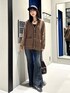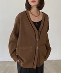 カジュアルデイリーコーデ🧸 【ライトモールストライプリブVカーディガン】 配色デザインが可愛いVネックカーディガン♡モール糸を使用しており、秋冬らしいもちもちふわふわの肌触りです!ヴィンテージ調のボタンもさりげないポイントに✨お尻を隠してくれるゆったりシルエットなので、軽い羽織としても大活躍します👏 ブラウンのカラーはラインがブラックになっているため、モノトーンが多い私も合わせやすかったです◎ぜひチェックしてみてください💫