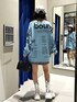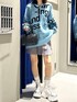 ニットコーデ🩵 【マガジンジャガードニット】 店頭でも完売するほど大人気のマガジンニット📰 全面にロゴが入っている事でどこから見てもデザインが伝わります✨ 落ち感のあるニット生地で着るだけでとっても着痩せして見えます◎ 綿の入った素材で春まで着用頂ける生地感です☘️ ミニボトムと合わせてワンピース風で着る着方がお気に入りです!!🎶