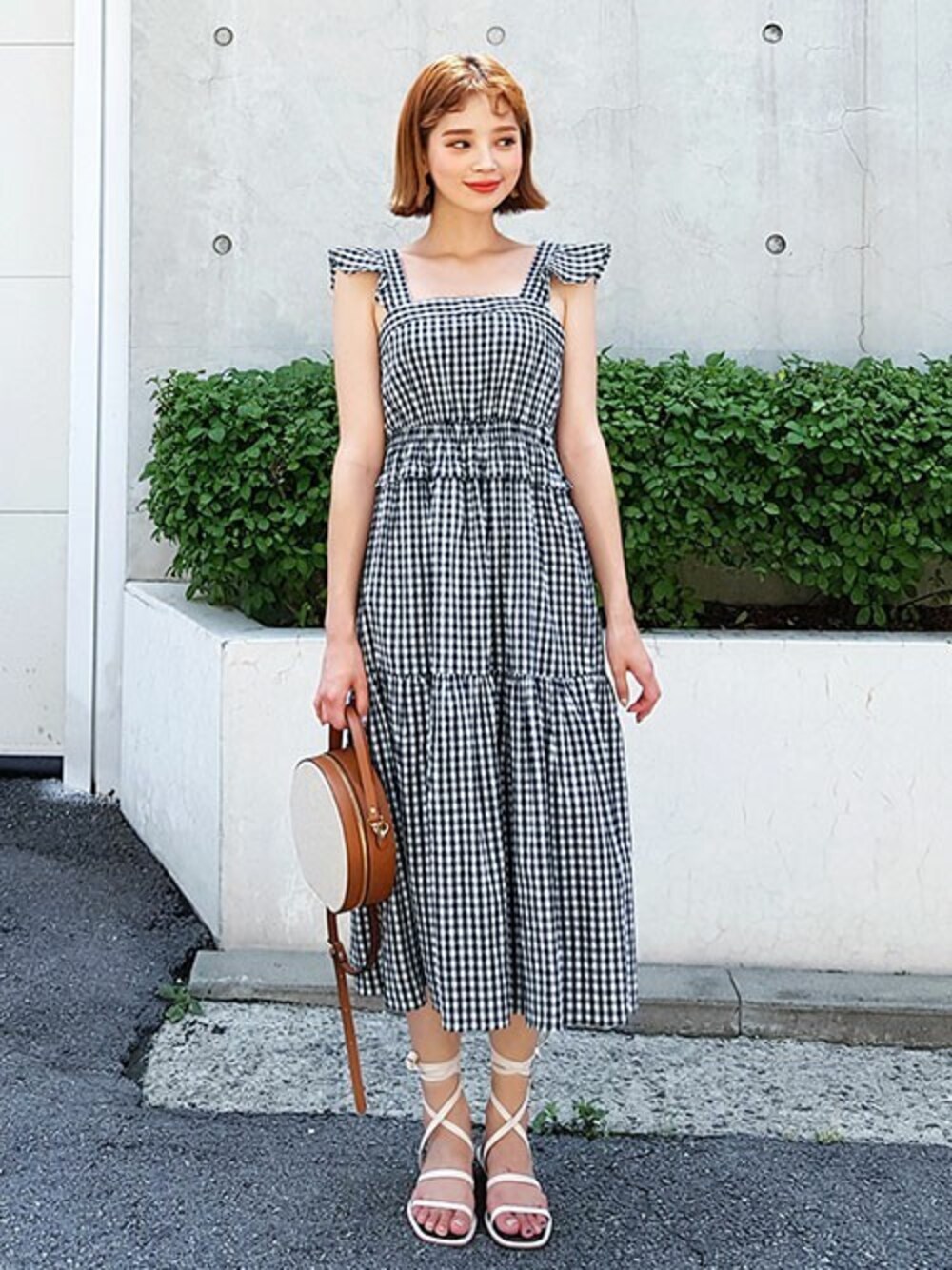 ディーホリックのワンピース「ショルダーフリルチェックワンピース」を使ったコーディネート