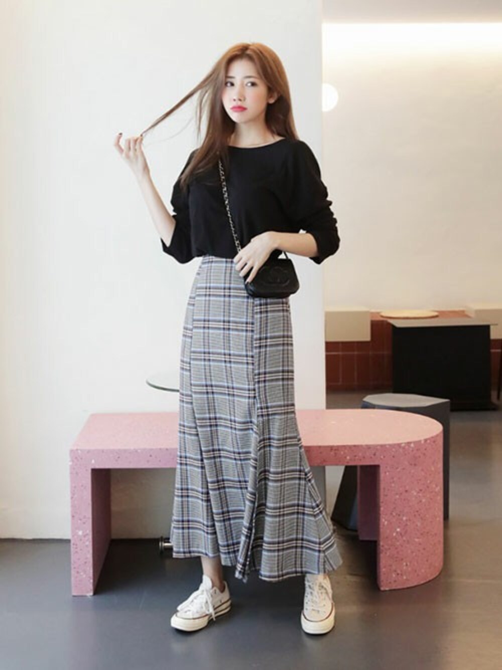 ディーホリックのスカート「マーメイドチェックスカート」を使ったコーディネート