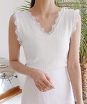 ディーホリックのキャミソール「Vネックレーストリムスリーブレス」を使ったコーディネート