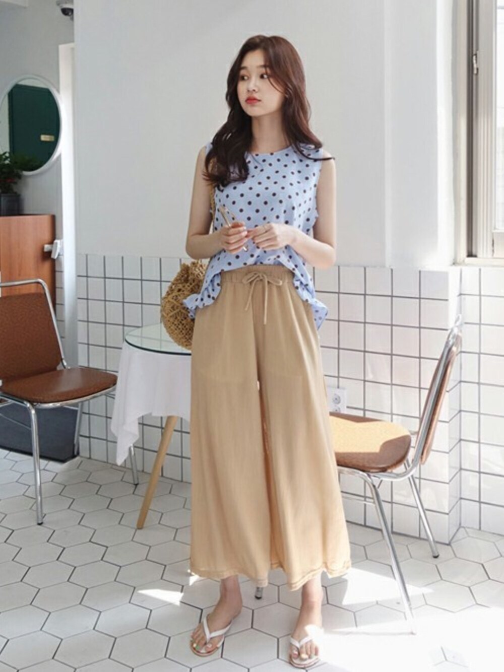 ディーホリックのタンクトップ「フリルヘムドットスリーブレス」を使ったコーディネート